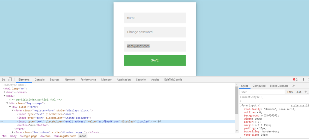 Javascript validation bypass, we can call is as client-side validation bypass too, what happens here, in this case, suppose a developer has implemented a feature in my profile page that the user cannot change the user-id of the account, once it’s generated, so as shown in the below fig. the developer has implemented client-side security measure so the user cannot edit the email field, when we give a check at the inspect element there we can see that field is disabled to make changes,